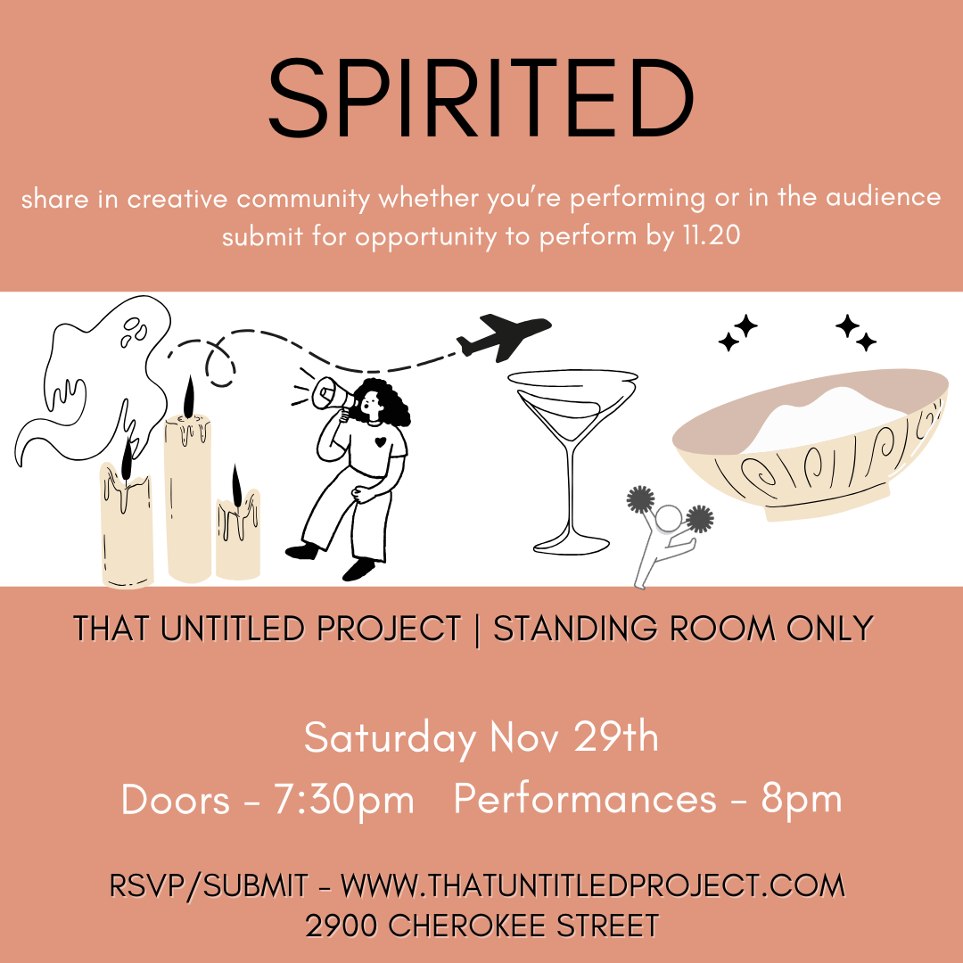 - OVERVIEW – Calling all choreographers, poets, dancers, comedians, burlesque performers, singers, musicians, contortionists, and other artists interested in a micro-performance at That Untitled Project. “Standing Room Only” is a stripped back performance series meant to give local artists and local art lovers a chance to enjoy and interact with this creative community.